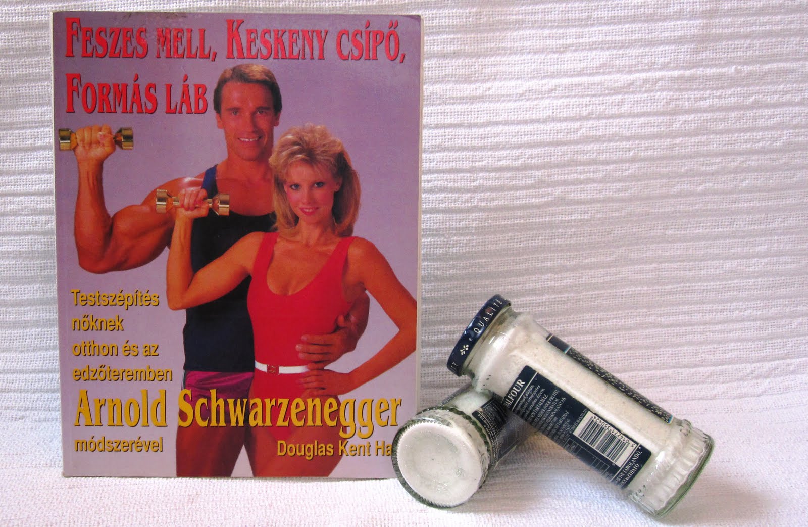 És mozogni is kéne. Első körben a heti 1 úszást választottam. A szerdai előadásom után irány a BVSC, ahol először fél órát bírtam, majd egyre többet és többet. Pár hét után pedig már végigúsztam az egy órát, hiszen a zsírégetés csak 20 perc után kezdődik. Valamint egy elég vicces Arnold Schwarzenegger könyvből néztem alakformáló gyakorlatokat napi 20 percben. Súlyzónak pedig két francia lekváros üveget (ennek a formája volt leginkább súlyzóhoz hasonlatos) tömtem meg sóval (kb 600-600g-osak).