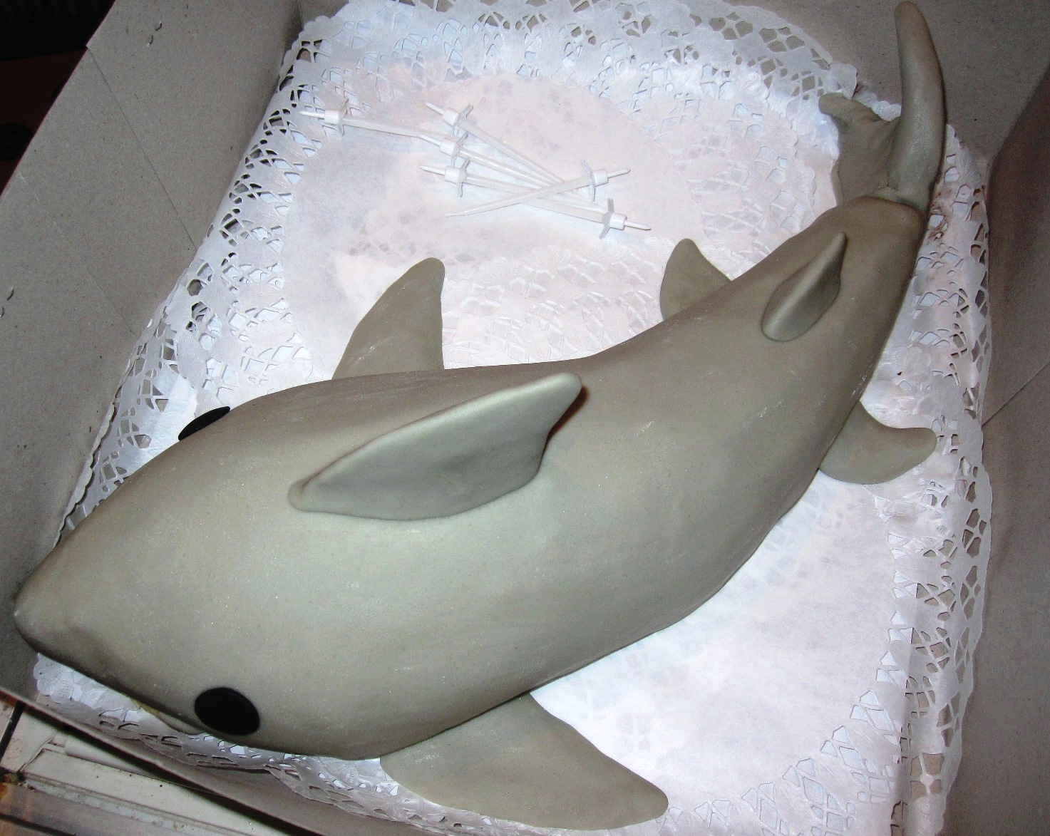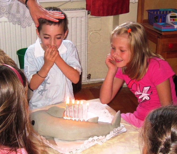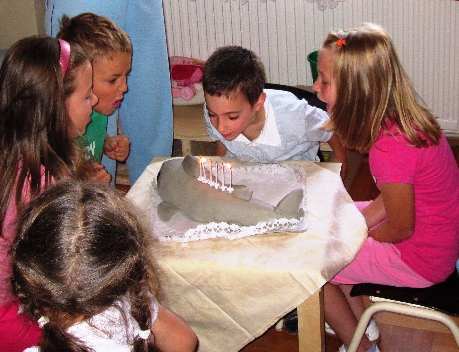 A lecke fel lett adva és anya cápás tortát készítő cukrászda után nyomozott. Sikerült, így a szerdai előszülinapi partyn a legnagyobb titokban előkészítve óriási sikerrel debütált a cápatorta a halacska csoportban. Az óvó nénit megkértem, hogy készítsen pár képet. Íme: