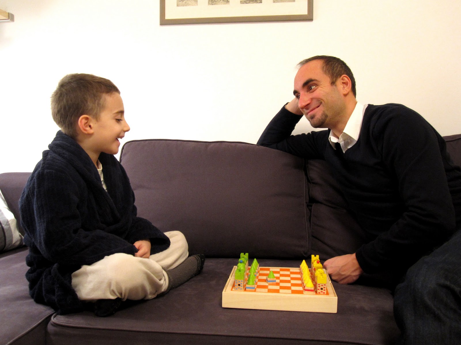 Névnapjára sakkot kapott tőlünk, így Mikivel esténként tanulják a szabályokat és jókat játszanak, már egész ügyes. Úgy tűnik, már csak én nem tudok sakkozni a családban.