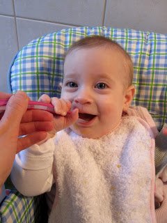 Most sokkal bátrabban mertem belefogni a hozzátáplálásba, mint annak idején Ábellel. Így 5 hónaposan Bora elkezdte kóstolgatni a gyümölcsöket. Eddig alma, őszibarack, körte és sárgabarack vagy almalé rizspehellyel került a kanálra.
