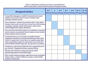 Nemrég hallottam egy rádióinterjút Dévény Annával, így szereztem tudomást egy táblázatról, amelyben minden szülő egyszerűen ellenőrizheti gyermeke mozgásfejlődését. Ugyanis minden hónap számít a csecsemők mozgásfejlődési rendellenességeinek felismerésében, hiszen az időben, lehetőleg öt hónapos kor előtt megkezdett DSGM-kezeléssel (Dévény Speciális manuális technika- Gimnasztika Módszer) az érintett gyermekek 80%-a meggyógyítható.