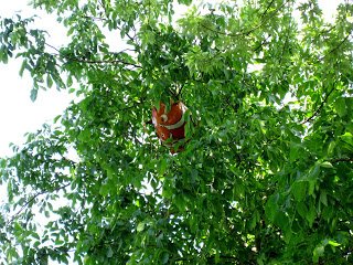 Tegnap ünnepélyesen elballagtak a halacska csoportosok, köztük Ábel is. A nap sütött, az ovisok libasorba levonultak a kertbe a halacskás lufikkal díszített korlát elé, verset mondtak és ünnepélyesen elengedtek egy óriási lufit. A természetesen hal formájú lufi (Némó) a gyerekek legnagyobb örömére megrekedt az első útjába kerülő fa lombkoronájában és csak később szállt el. :))